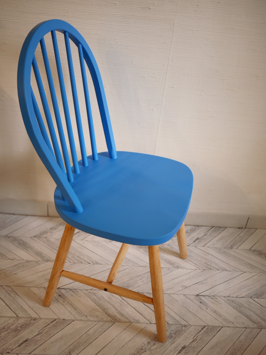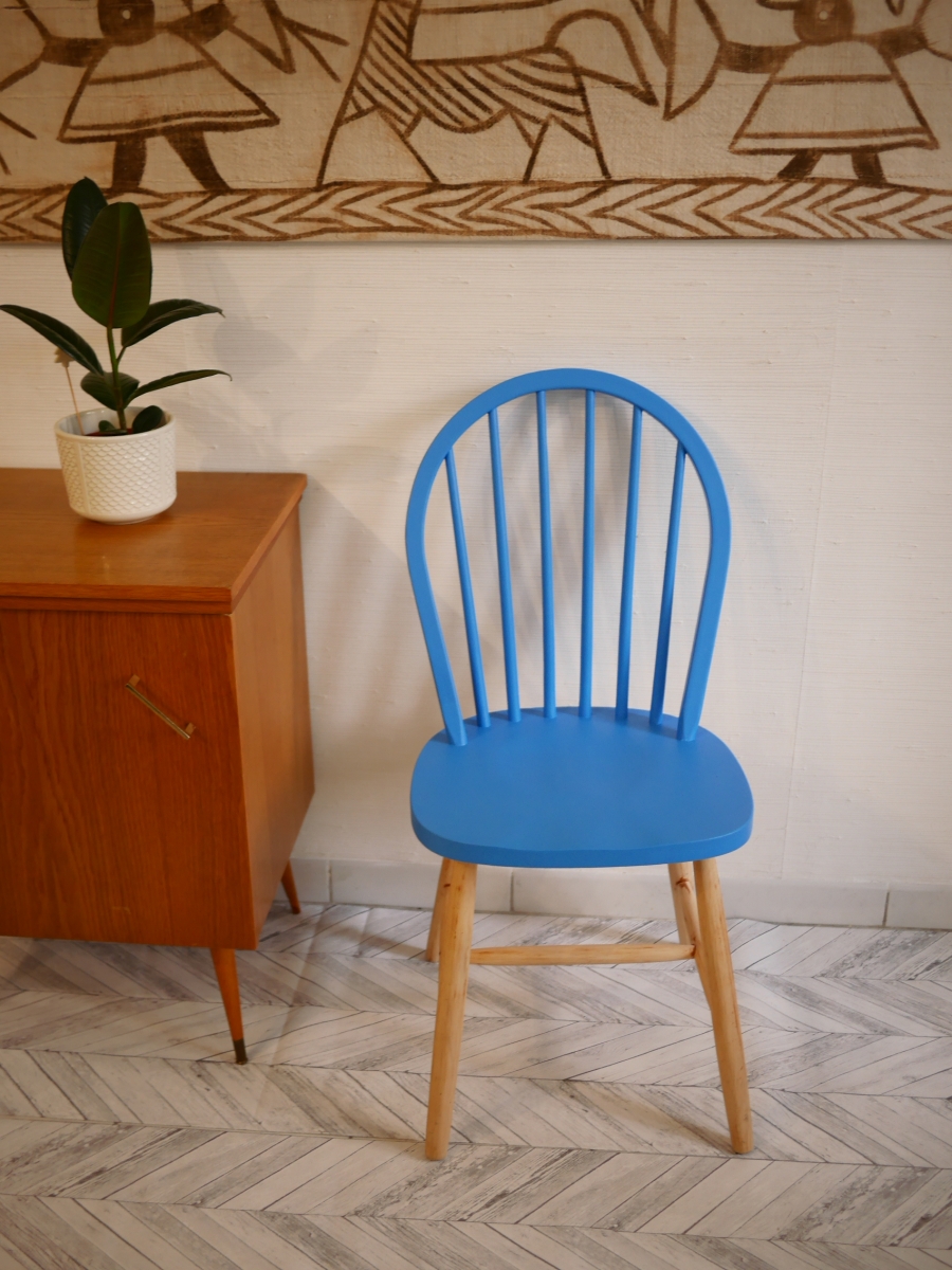 Cette chaise couleur bleue se marie avec une décoration vintage, rétro, fleurie, bohème, nordique ou féminine.