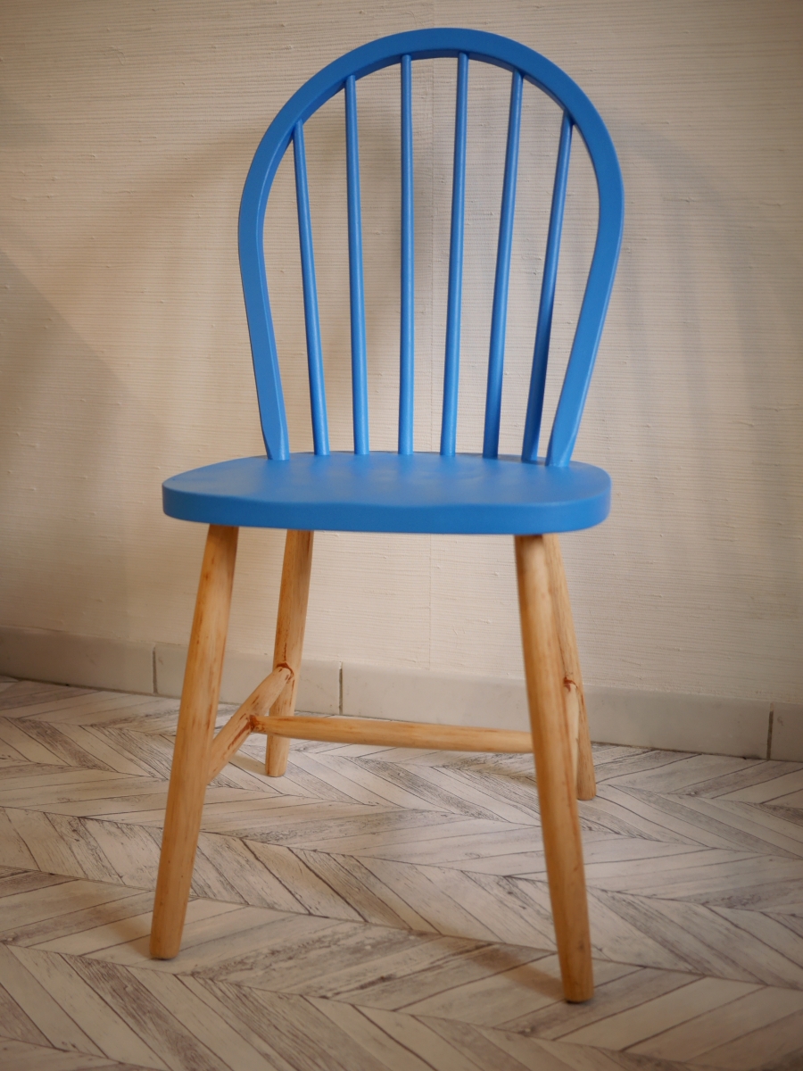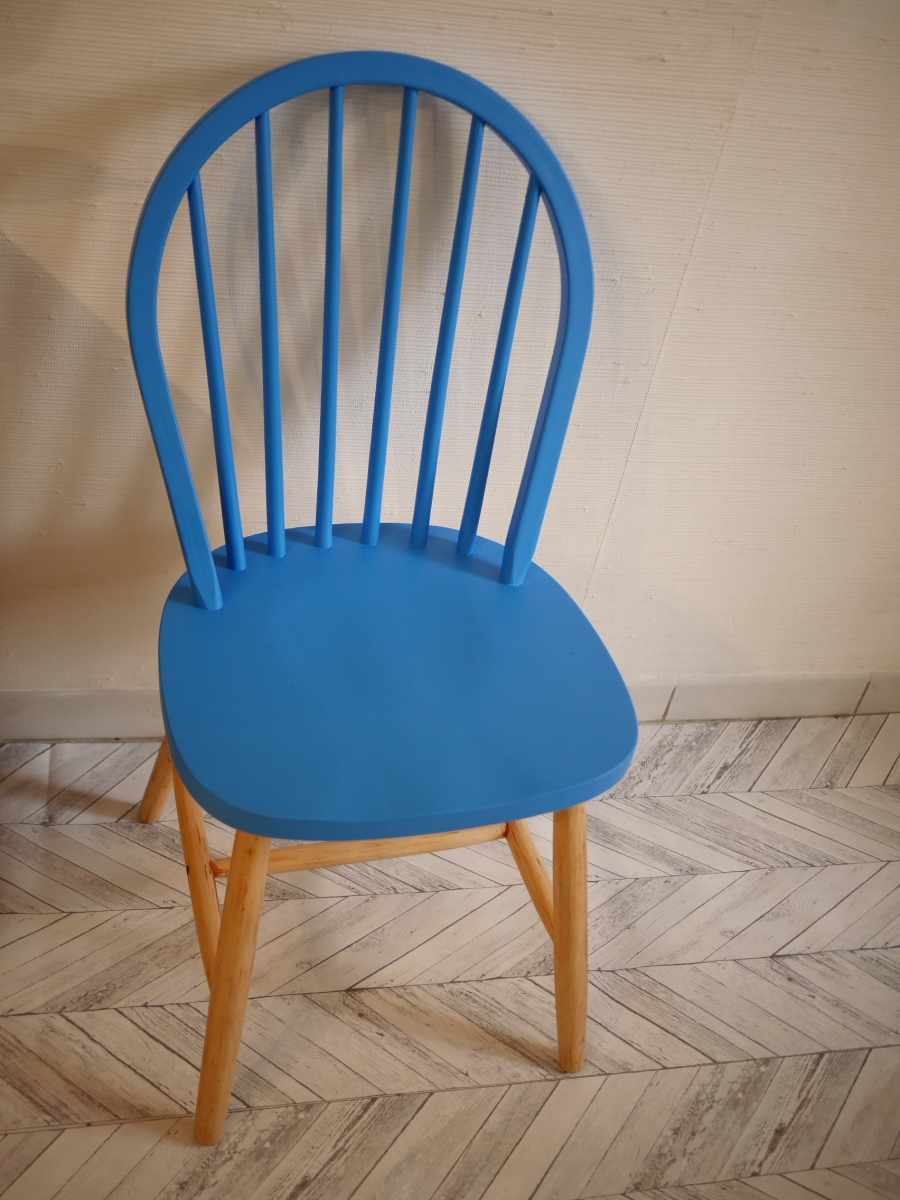 Elle a été poncée, rénovée et repeinte dans une nuance profonde : bleu klein.