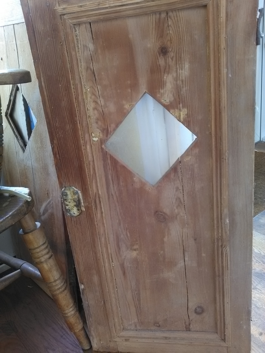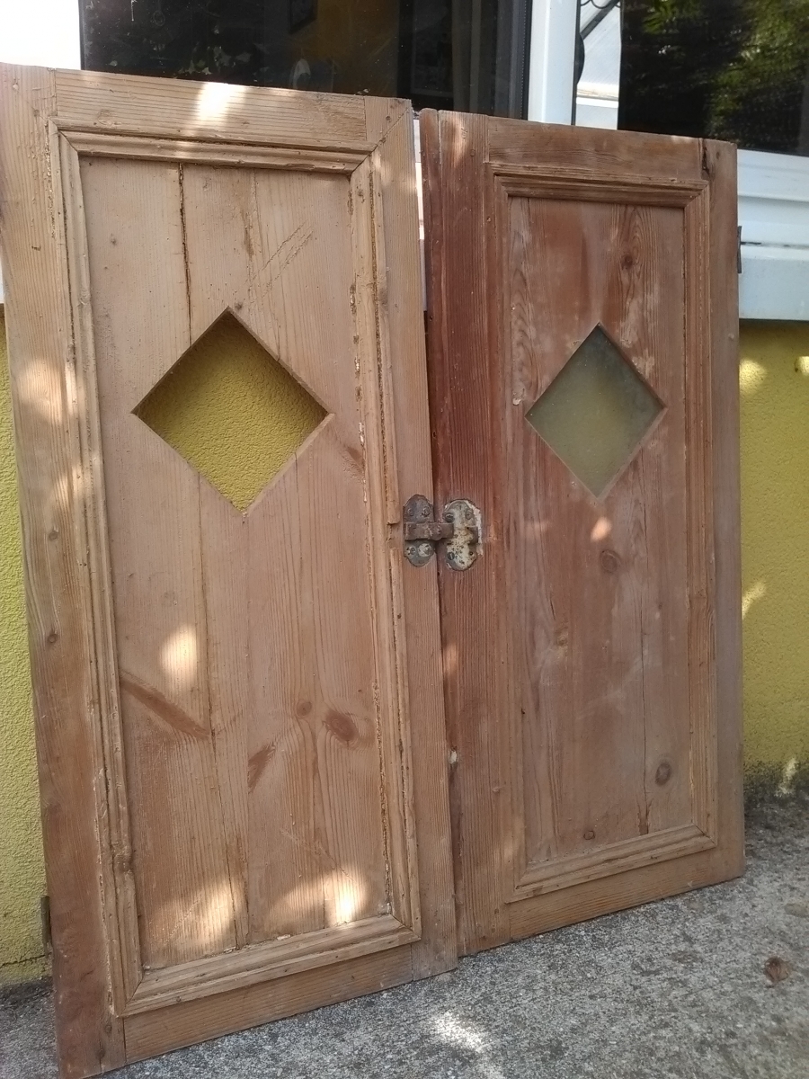 2 portes d'armoire en bois avec moulures et découpe en forme carré au centre. Hauteur 86.5 largeur 40 cm. En état d’usage. A retirer à la Roche sur Yon, St Gilles croix de Vie ou me consulter pour envoi en France