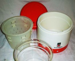 Cette fromagère est vendu à prix bas, vu que j'ai cassé le bocal en verre, mais vous pouvez vous en servir comme yaourtière, je fourni quelques pots en verres en cadeau, envoi uniquement en point relais mondial relay.