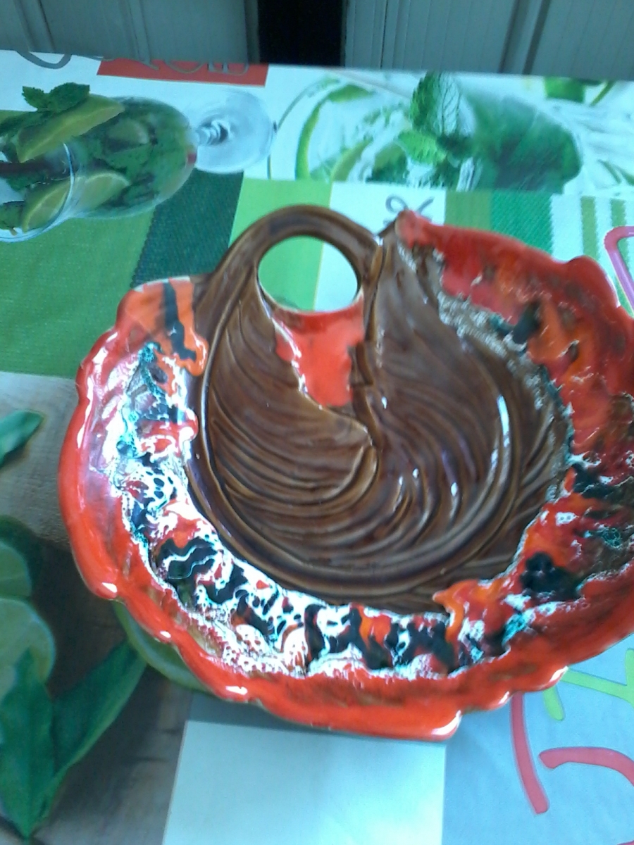 plat rond, multicolore signé Valauris, année 60/70, vintage