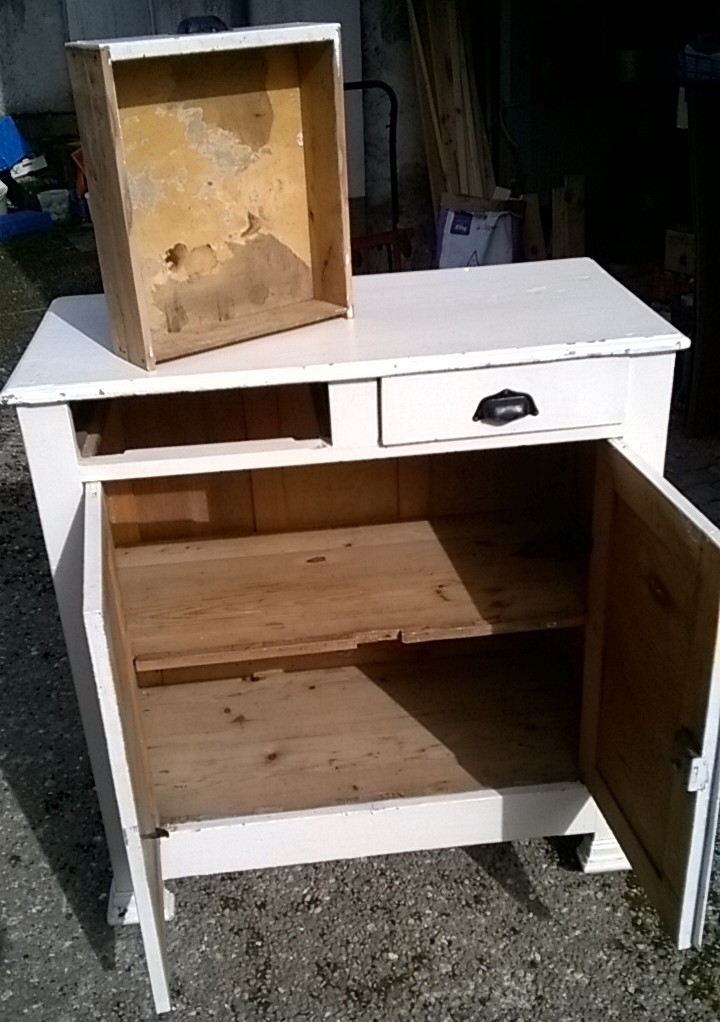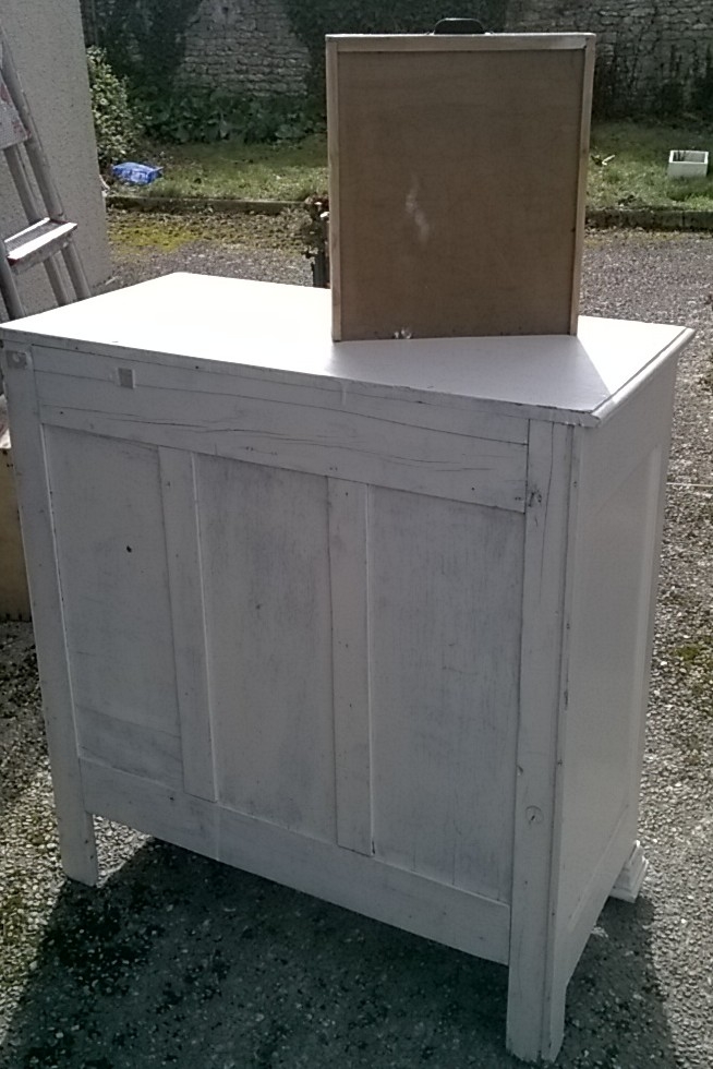 Il est resté dans son jus, en bois plein y compris pour le fond et les côtés.