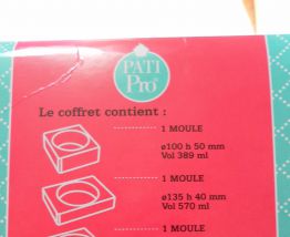 - 1 moule de diamètre 135 et de hauteur 40 mm (vol 570 ml)