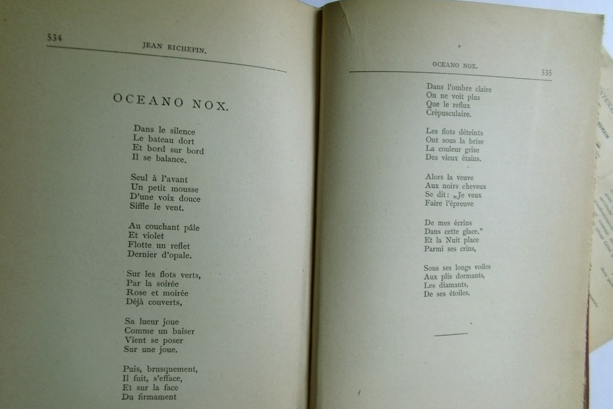 Quelques poètes que l'on retrouve dans ce livre : Lamartine, A. de. Hugo, Victor. Musset, A. de. Baudelaire, Daudet, A. Villiers de l’Isle-Adam. Mallarmé. France, A. Verlaine, P. Maupassant, G. de. Rimbaud, A. Rostand, E. et al.