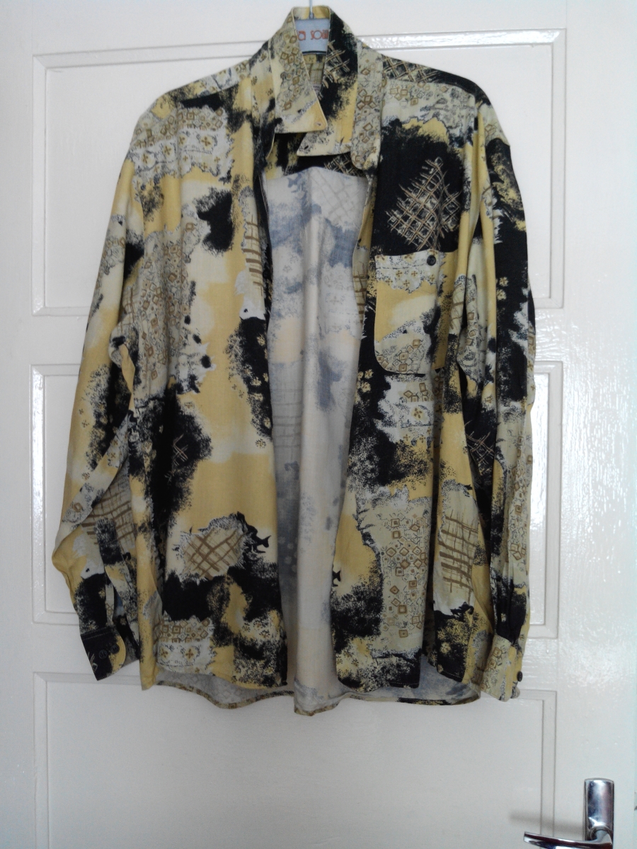 belle chemise mixte a motifs couleur dominantes jaune et noire