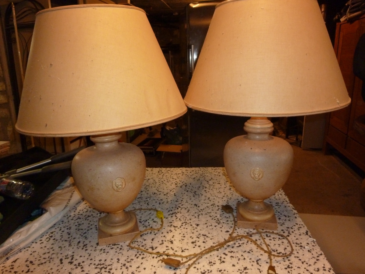 Vends 2 lampes en terre cuite, 2 ampoules chacune, hauteur réglable.