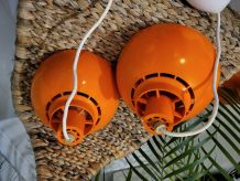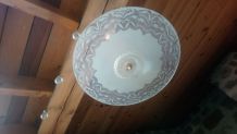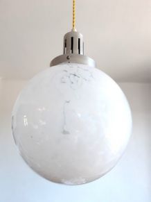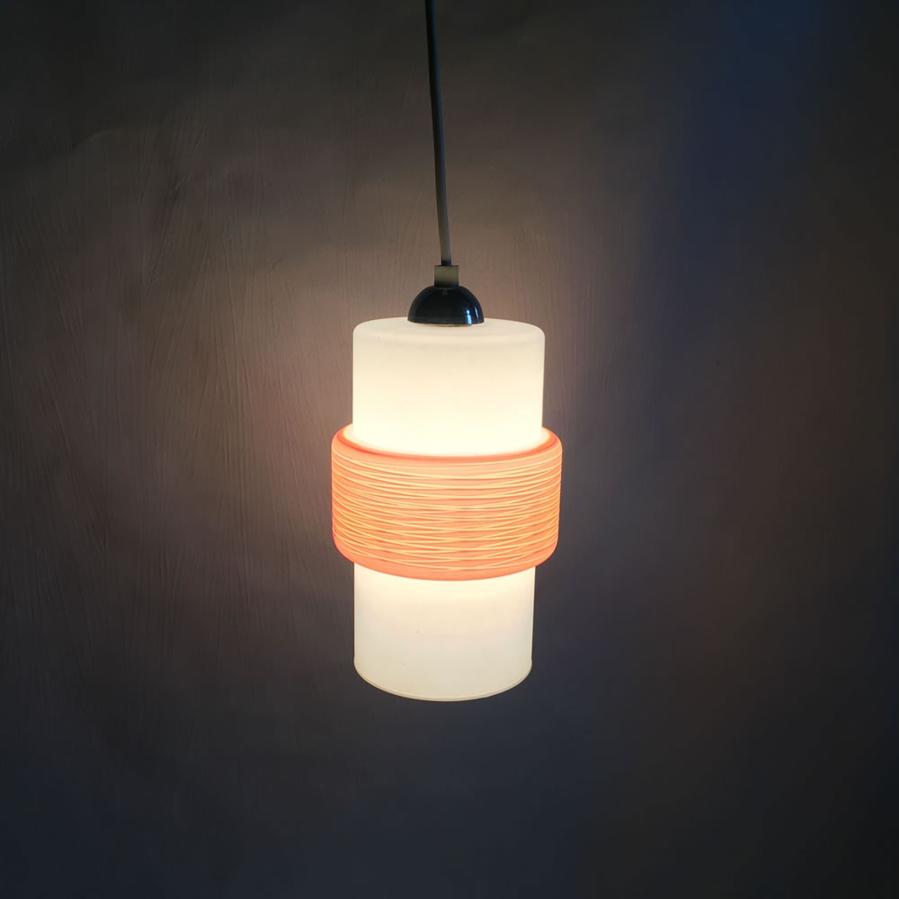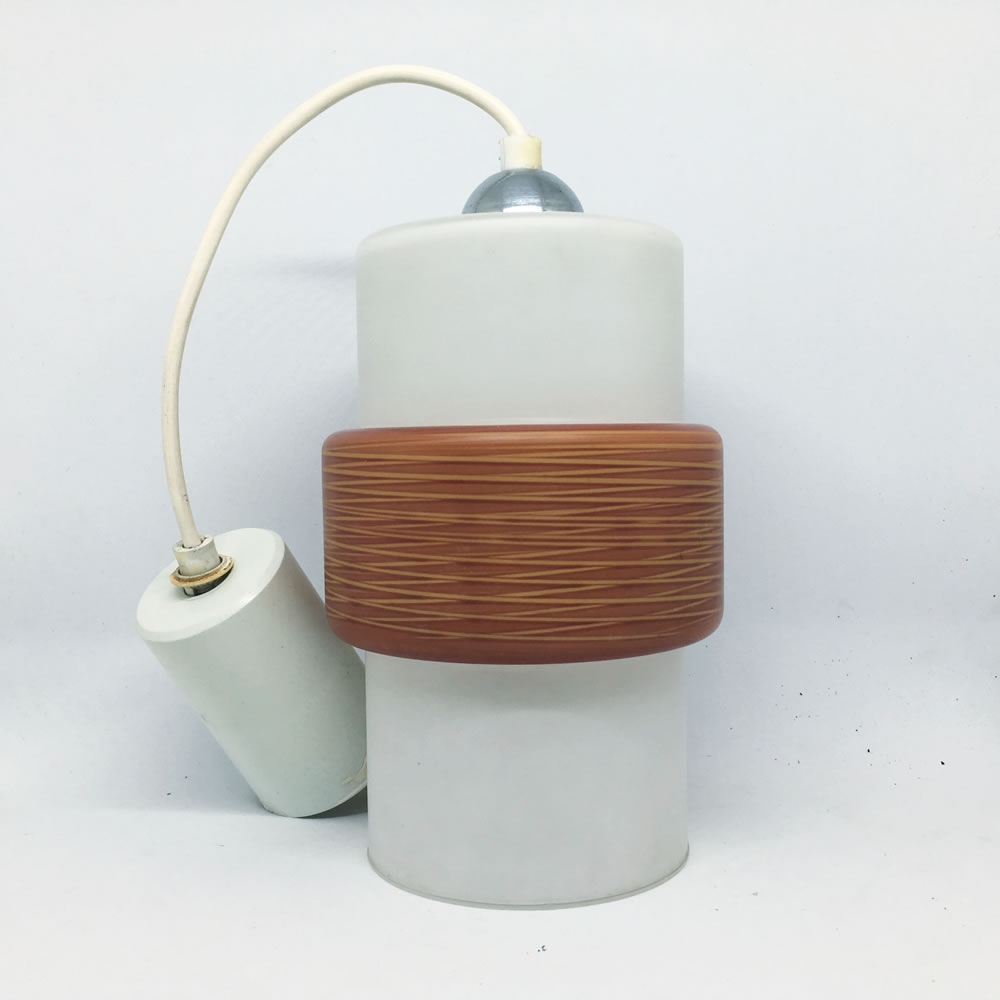 Suspension en verre teinté d'inspiration scandinave, années 70. Bon état, fonctionne avec ampoule à culot E22. Le fil peut facilement être remplacé pour plus de longueur.