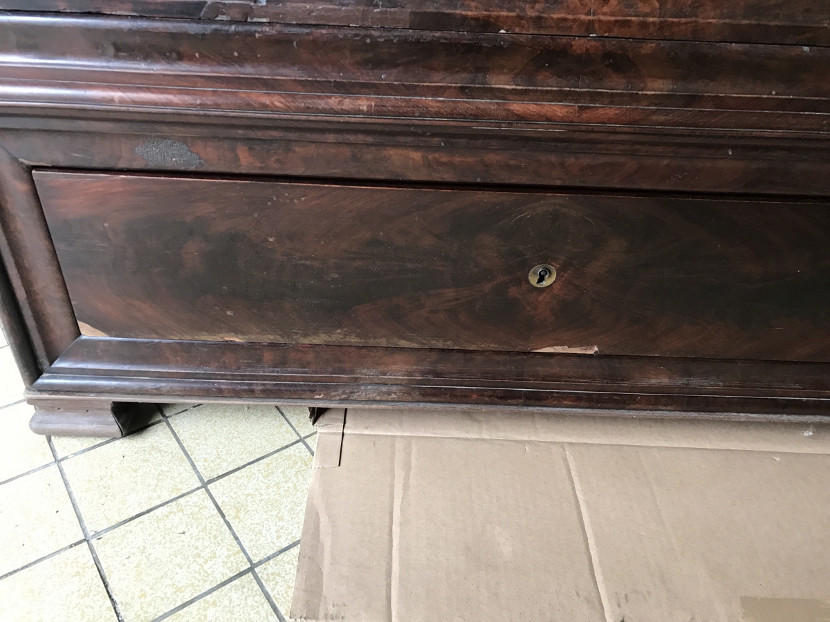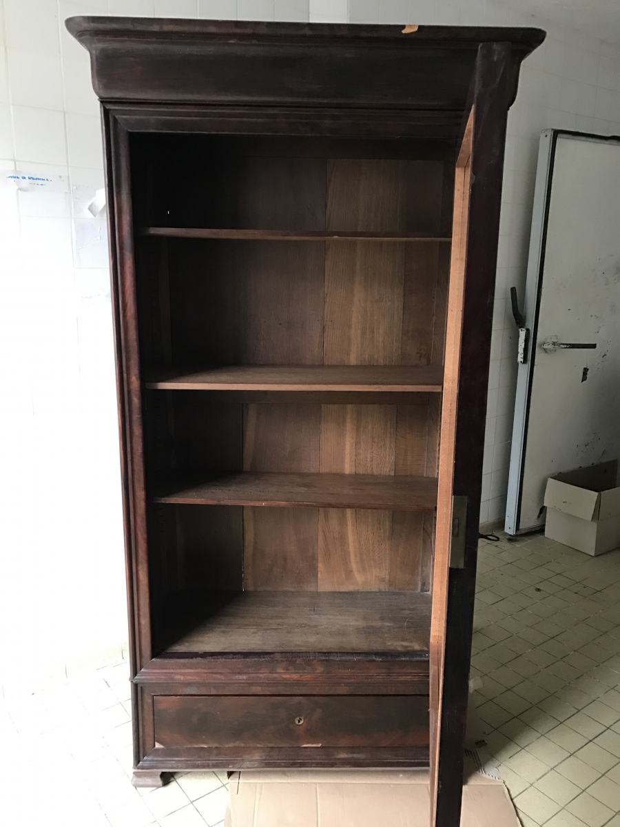 Jolie armoire époque Louis Philippe à doucine en bois plaqué.