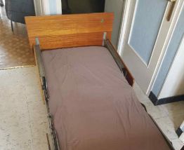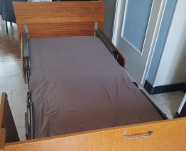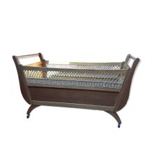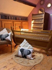 Très joli lit pliant ancien sur roulettes en bois clair.