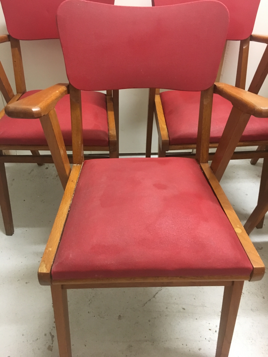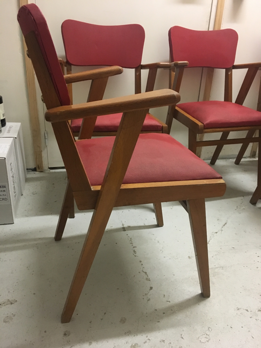 Vends lot de 5 chaises vintage années 60. Sky rouge. Assez bon état. À venir chercher sur place Paris 10