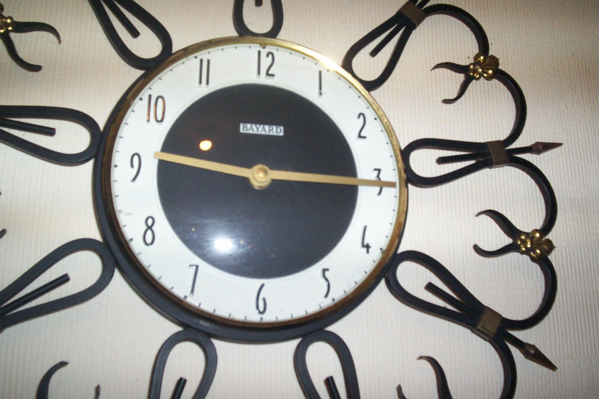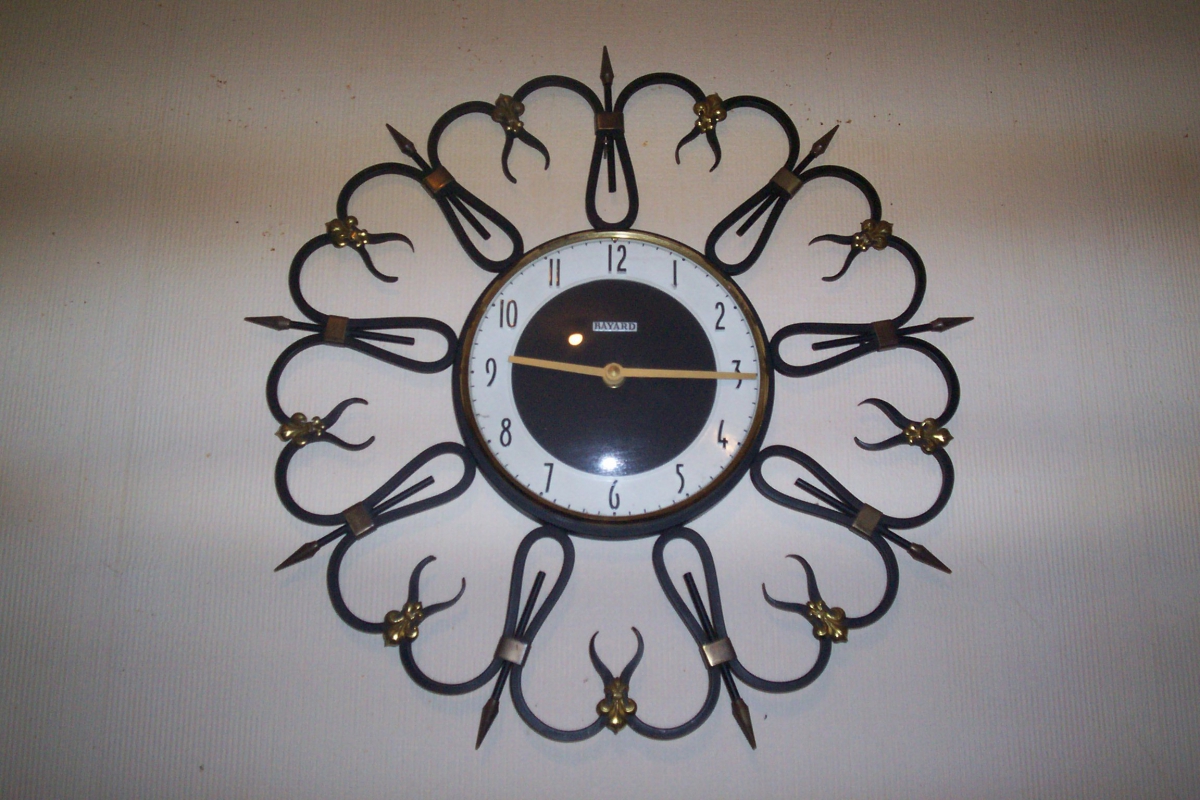 horloge métal forger avec globe bomber en verre horloge de marque bayard 39 cm de diamètre fonctionne avec une pile de 1,5 volt et d'occasion en très bon état .
