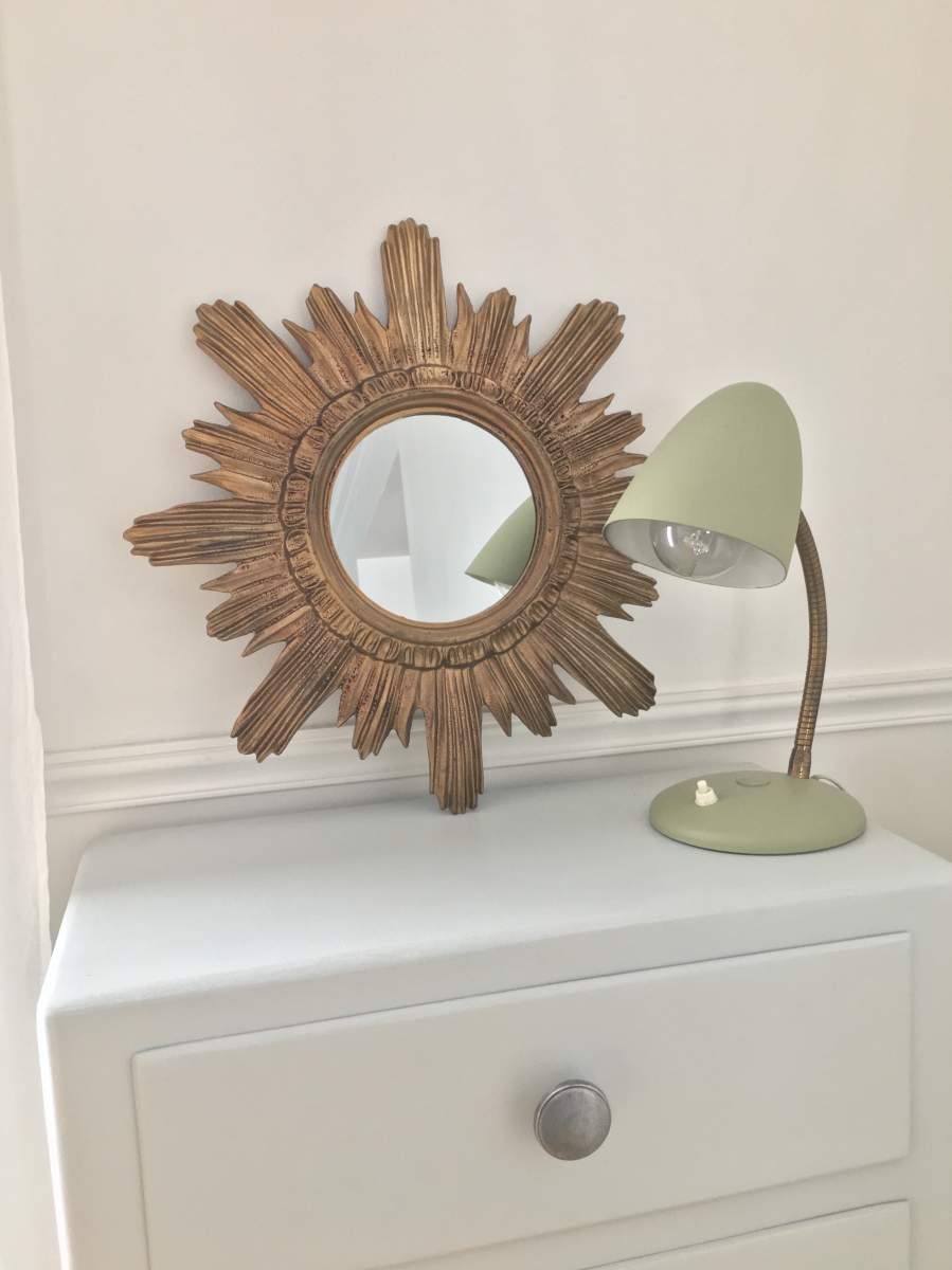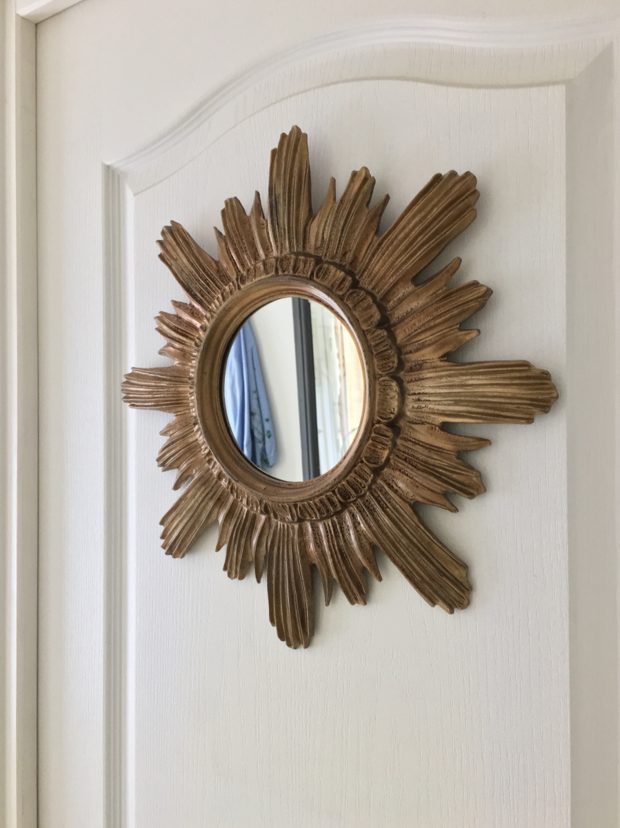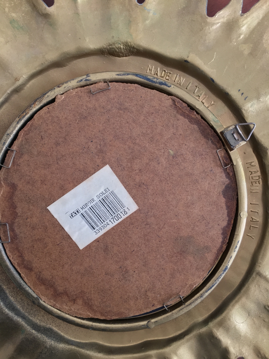 Miroir de sorcière Tati années 70′ en résine doré fabriqué en Italie. LE Tati de Rochechouart donc