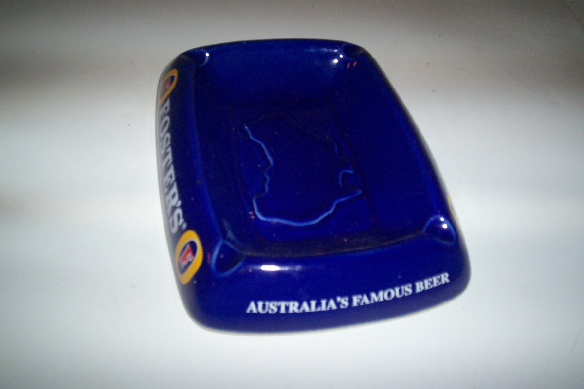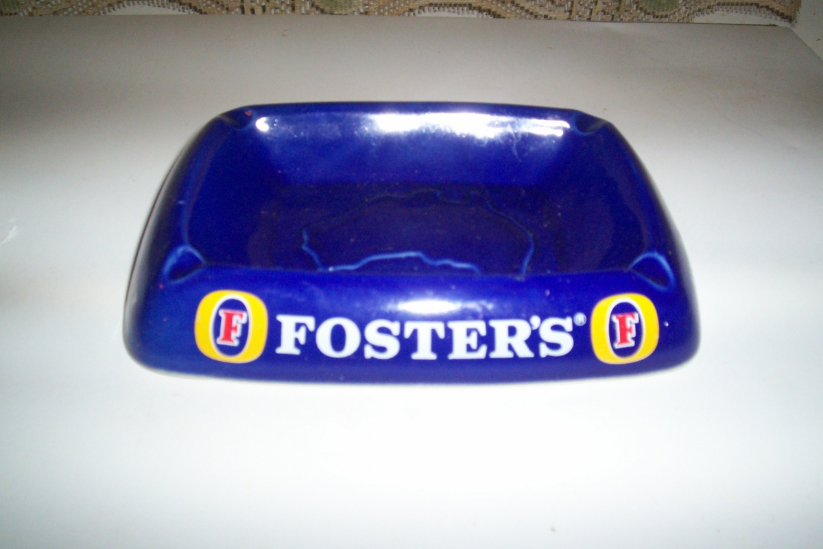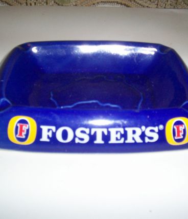 cendrier de bistrot 20 cm de long pub bière fosters en céramique d'occasion e ten très bon état.