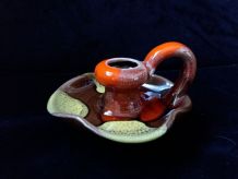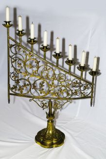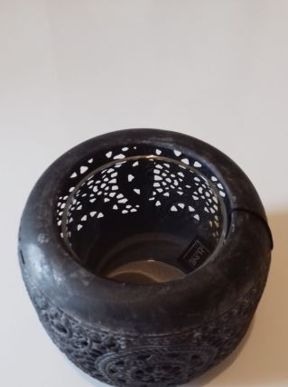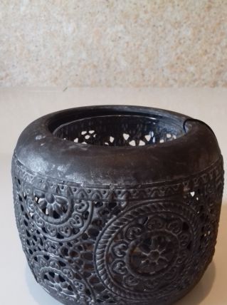Photophore rond en métal noir d'aspect ancien scuplté façon broderie orientale sur tout son pourtour.