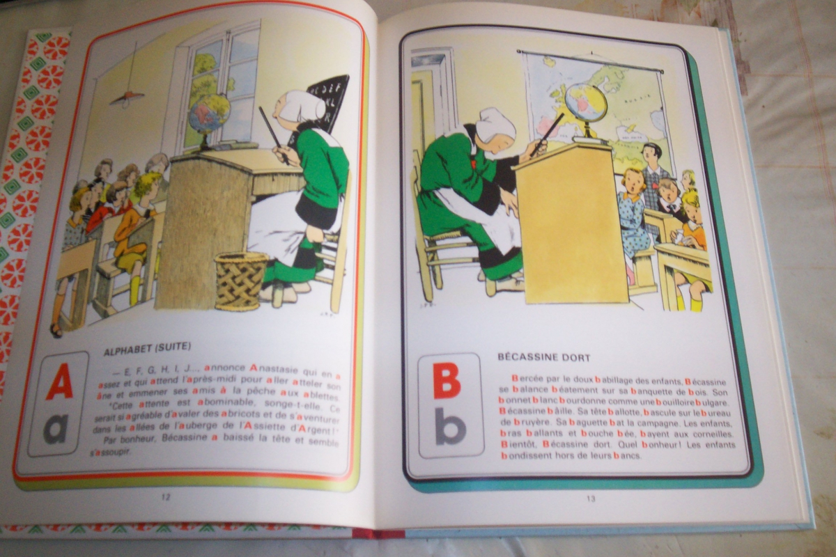 album BD cartonné dos tissu format 31,5 cm par 23 cm et 43 pages de 1990 des éditions ngautier-langereau BECASSINE MAITRESSE D'ECOLE bd d'occasion en excellent état propre .