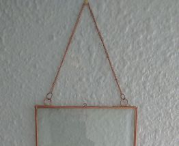 2 cadres en verre et laiton avec chaines de suspension.