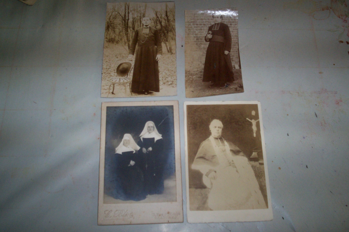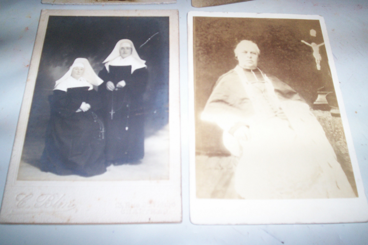 lot de 4 photographies de pretre et bonnes soeurs fin 1890 format 16,5 cm par 10,5 cm et 14,5 cm par 8 cm soit 3 photos sur carton et 1 papier fin