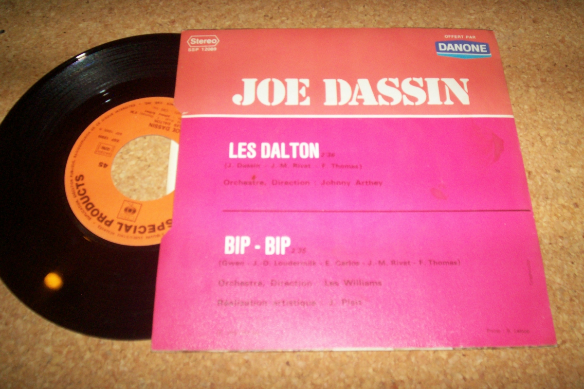 disque 45 tours assez rare de Joe dassin édition publicitaire DANONE d'occasion en très bon état