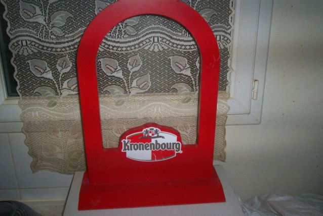 grand presentoir en bois de bistrot ou restaurant pour les prix une bonne cinquantaine de cm de haut environ et pub kronembourg objet en très bon état envoi proteger sous cartonnage et protection