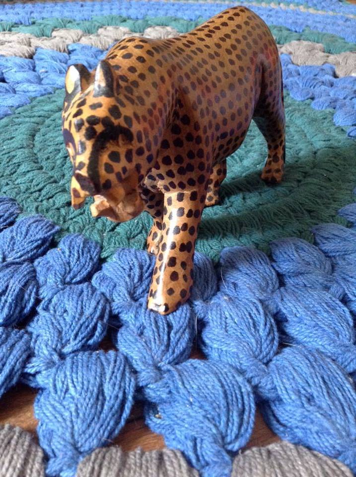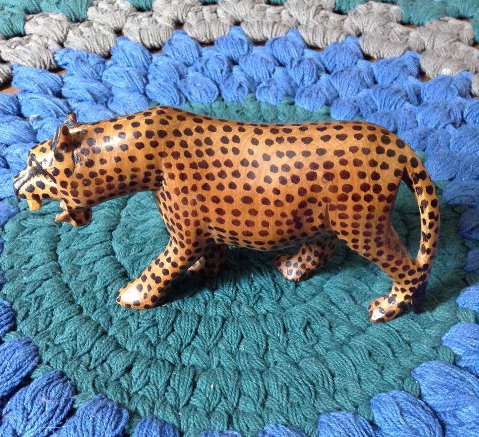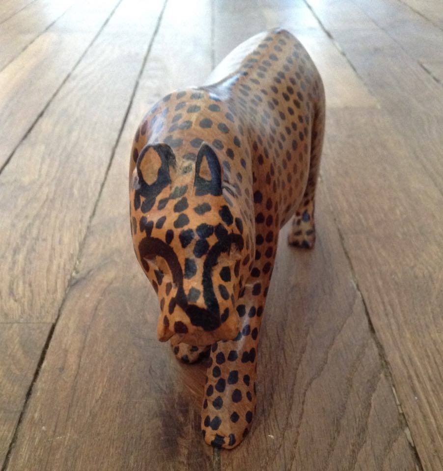 Leopard artisanal sculpté dans le bois. Réalisé au Kenya.
