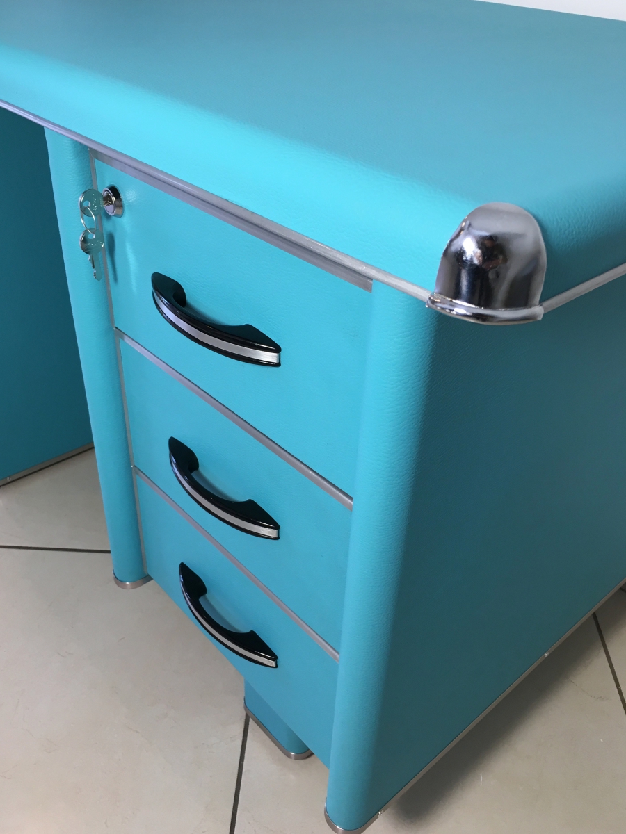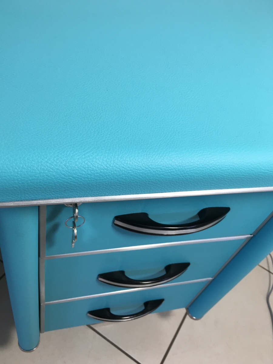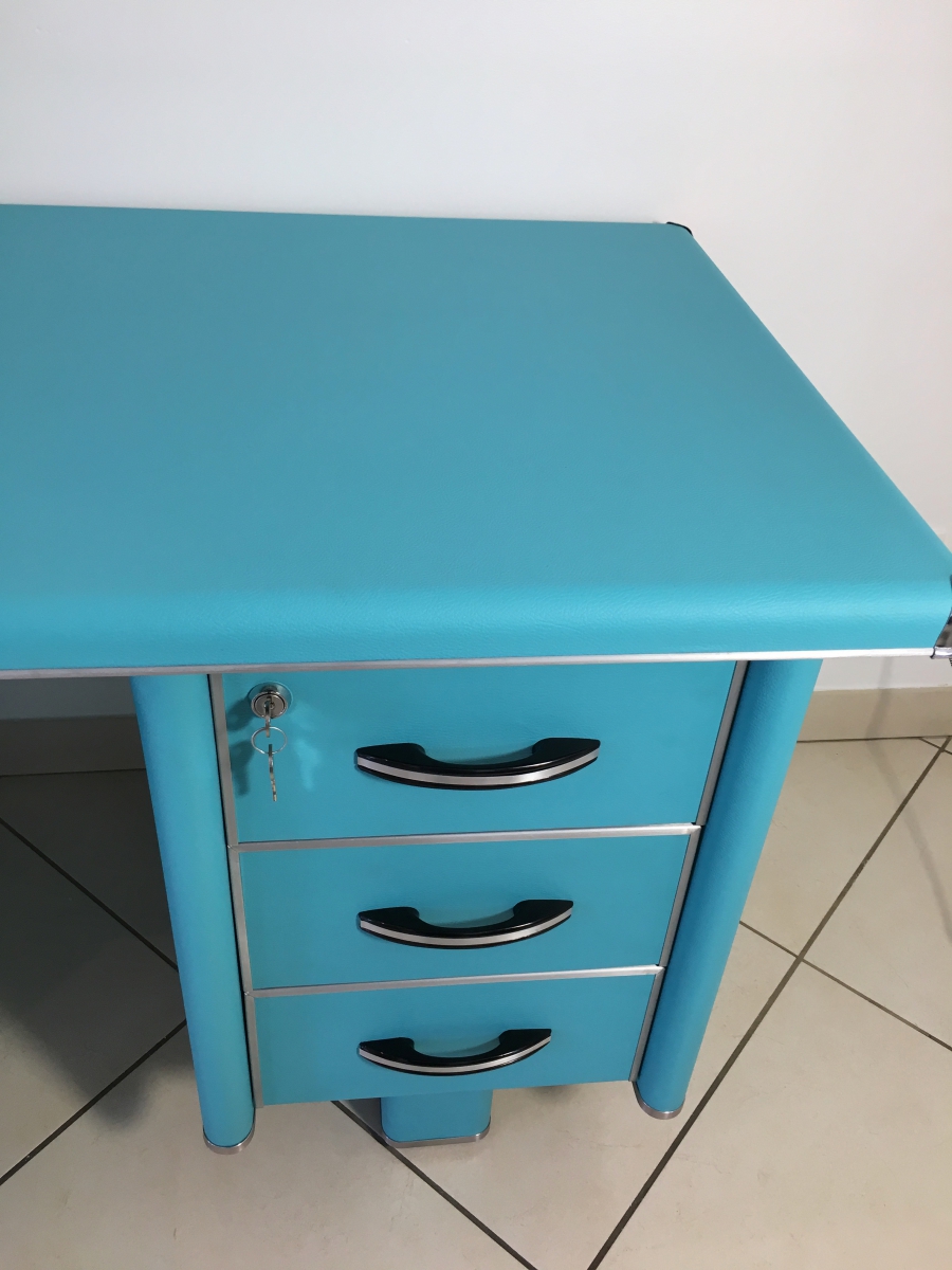 Tiroirs,piètement,plateau son entouré de baguette aluminium brossé