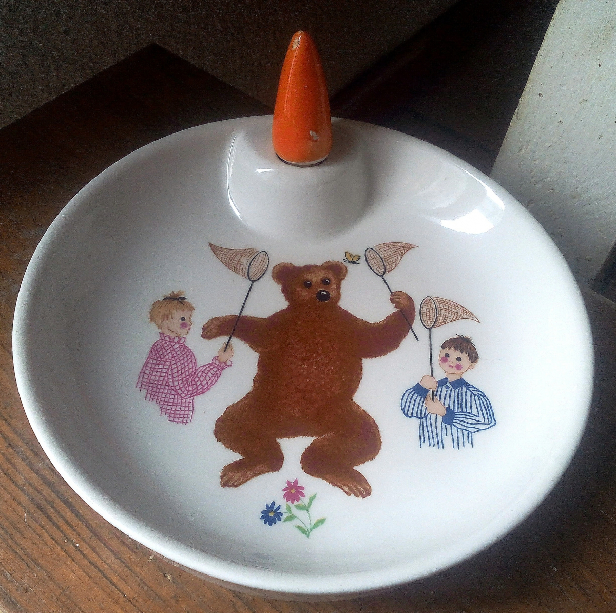 L'assiette est en parfait état (juste deux petits manquements de peinture orange sur le bouchon).