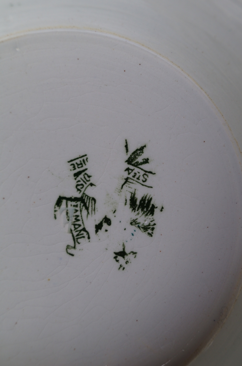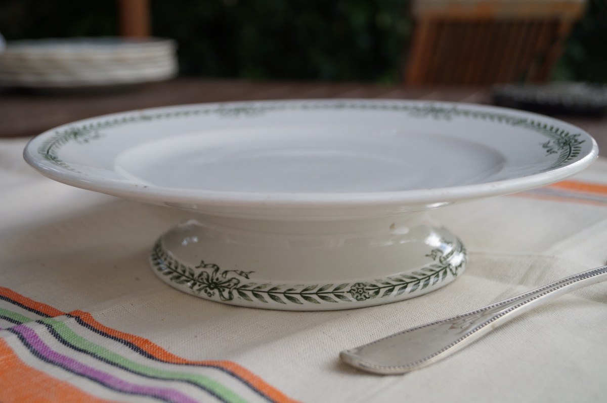 Assiette ancienne sur piédouche, modèle des faïenceries St Amand.
