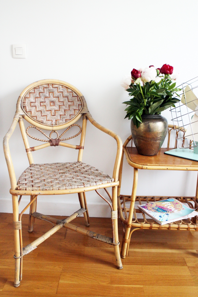 Fauteuil bistrot vintage en rotin 70's