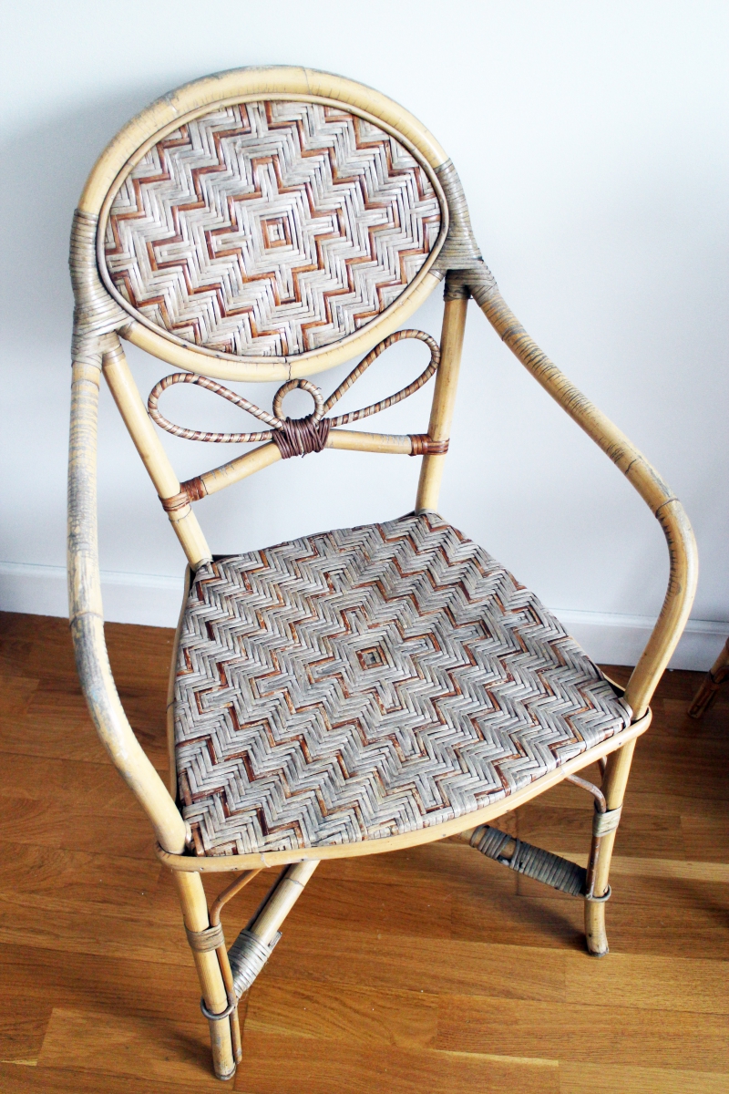 Fauteuil bistrot en rotin en très bon état, l'assise est droite et ultra confortable !