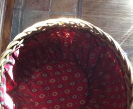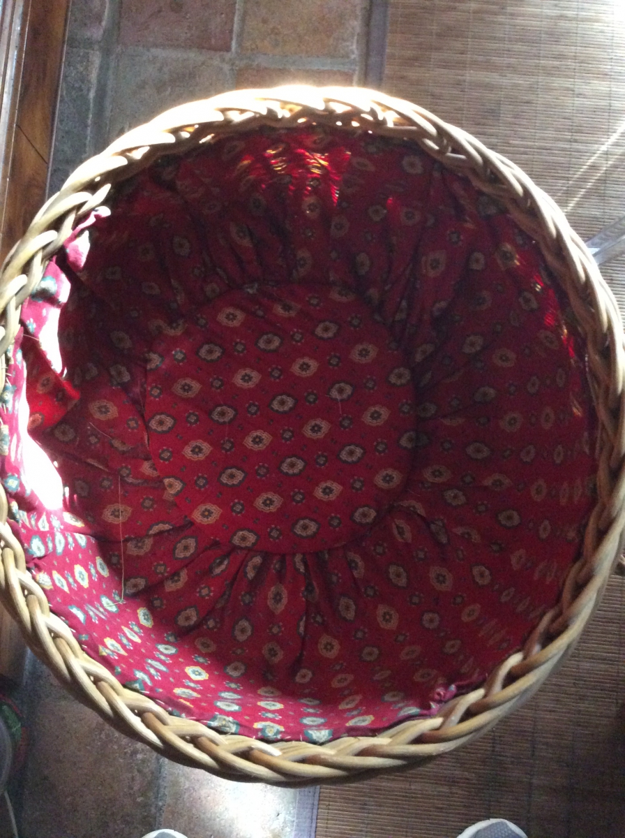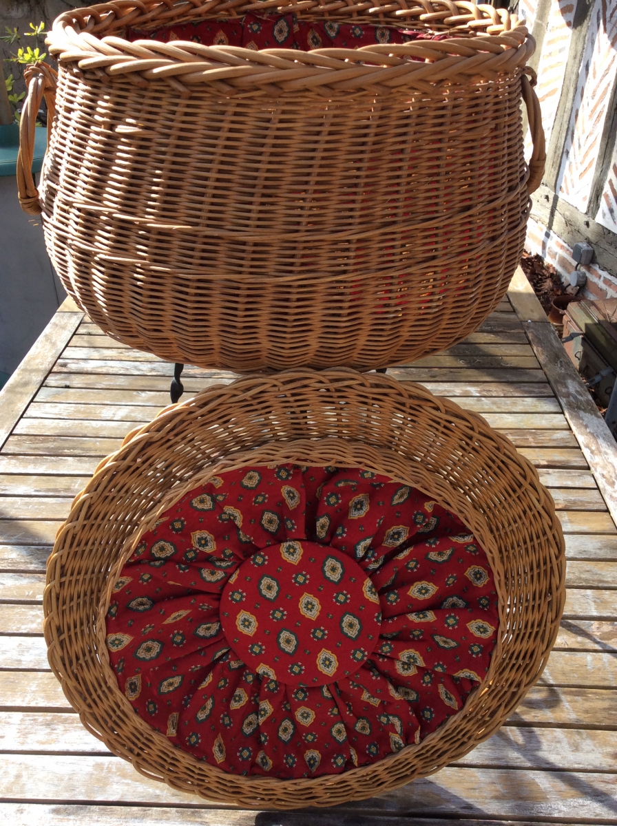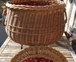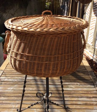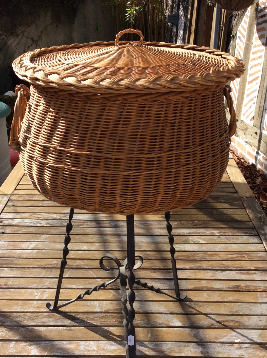 panier à ouvrage année 50 en rotin pieds en fer forgé