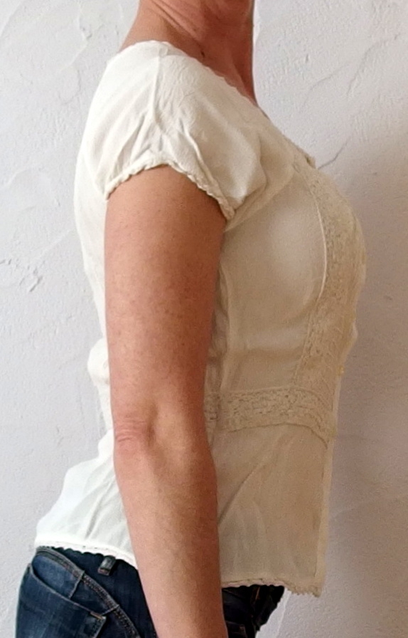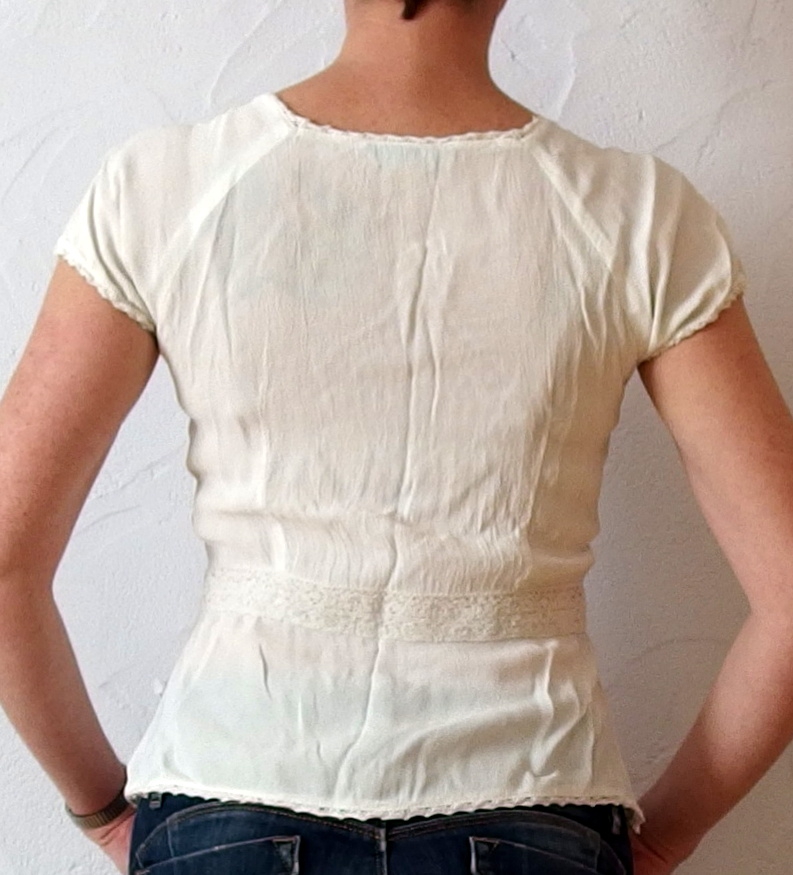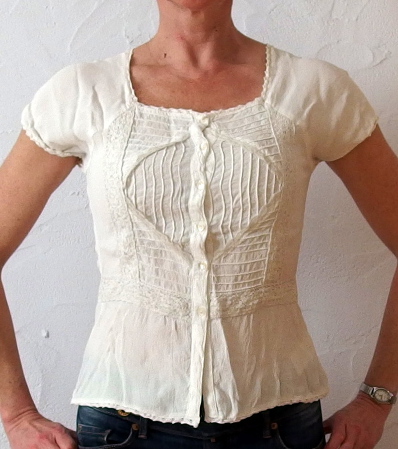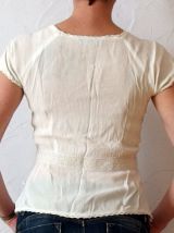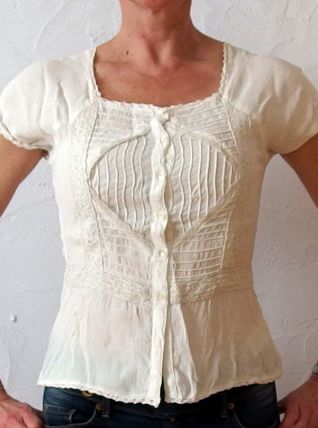 Chemisier style vintage avec jeu de dentelle et broderie écru T34-36