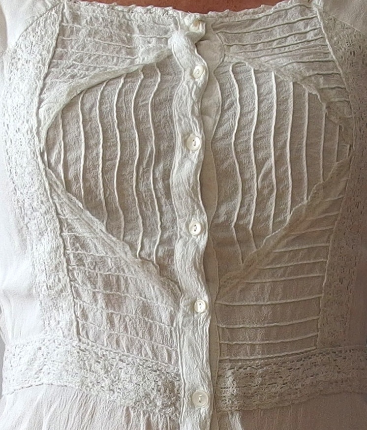 Chemisier très travaillé avec jeu de dentelle au col, manches , sur la base.