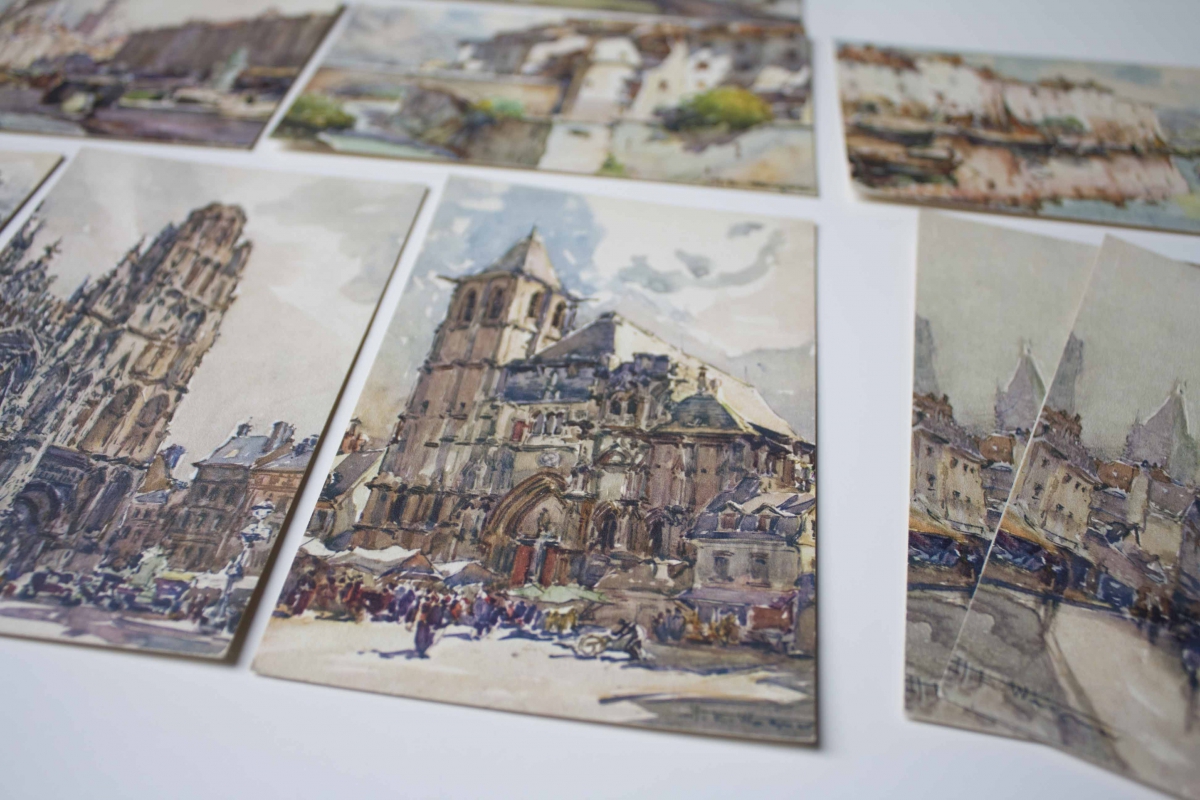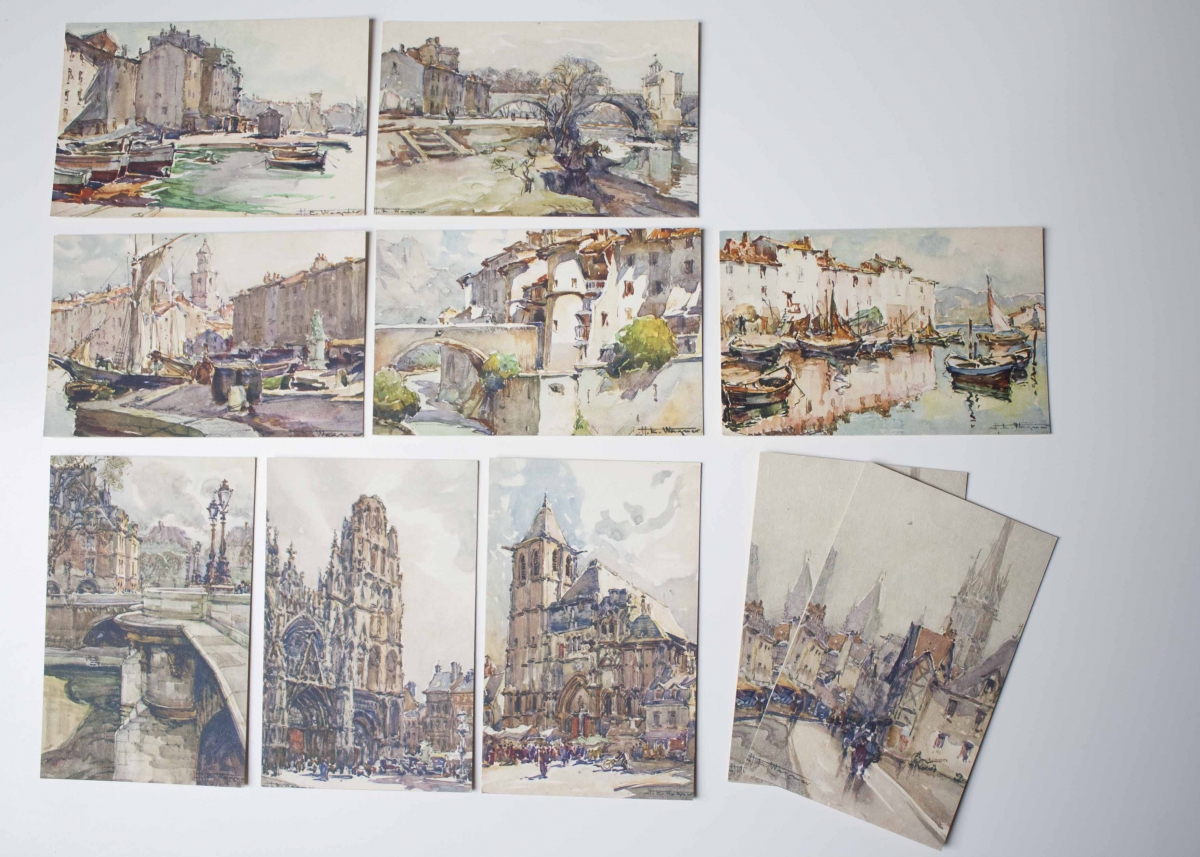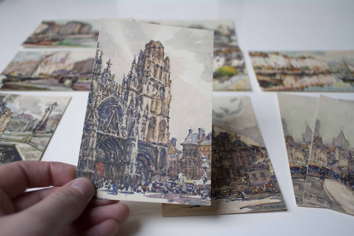 Ces cartes de Collection original représentent des paysages peints dont le port de St Tropez, la cathédrale de Rouen, le pont neuf...