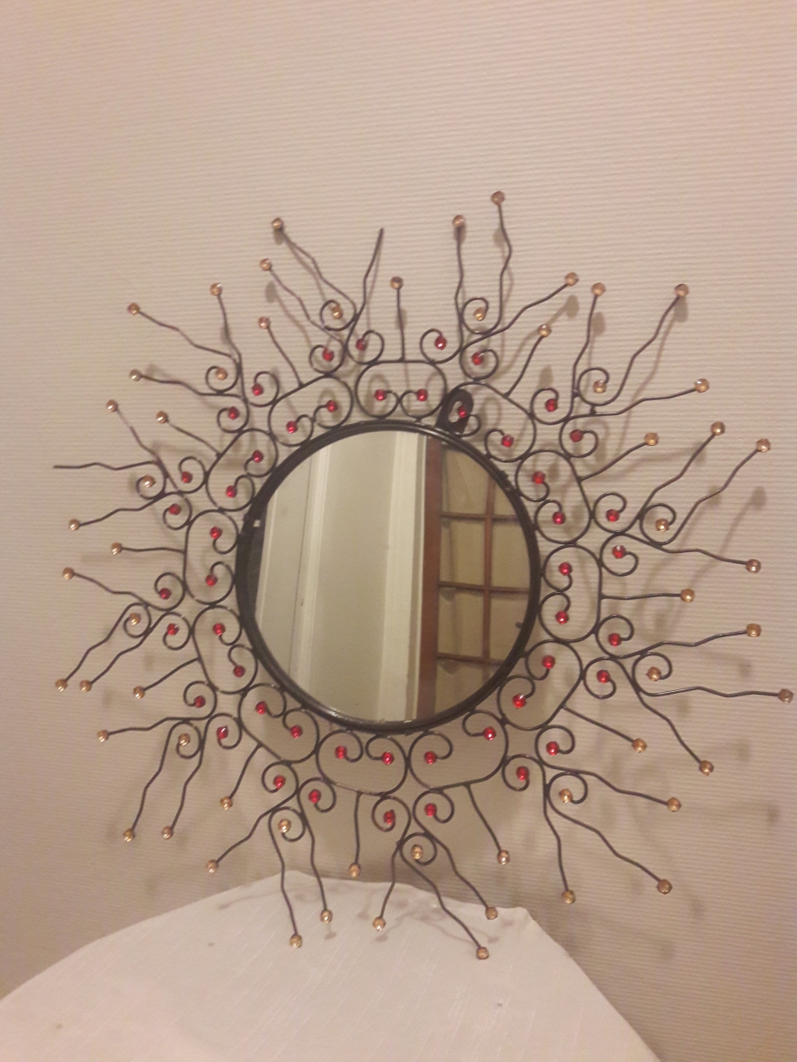 Miroir en fer forgé avec brillants rouge orange