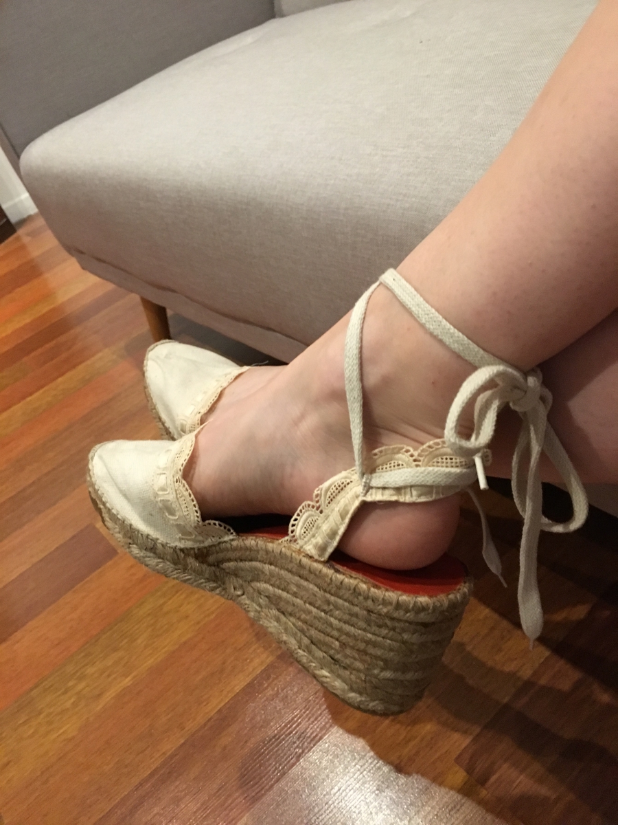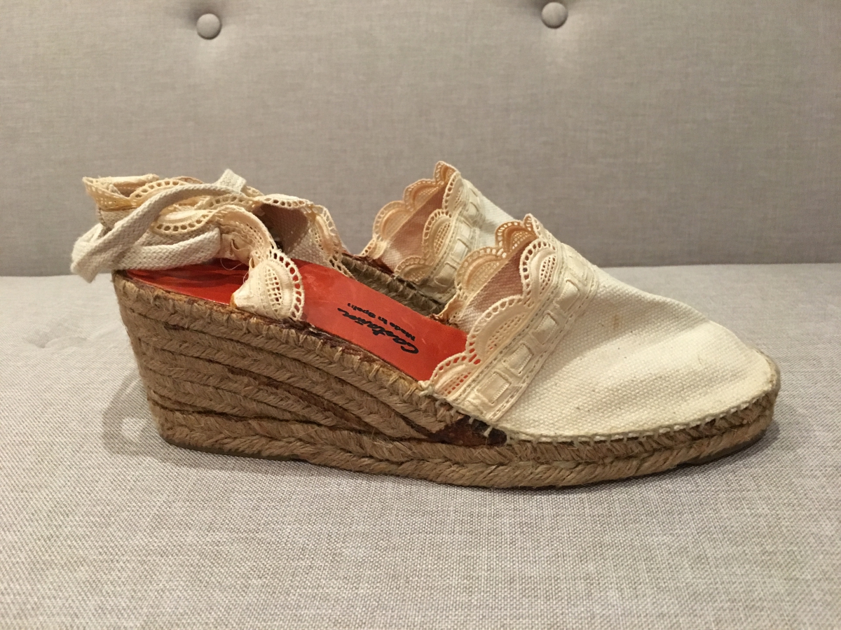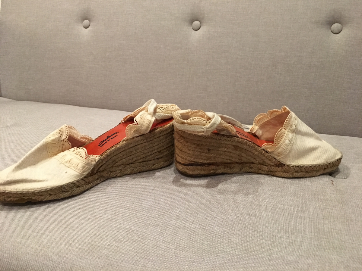 Les espadrilles de l'époque, très féminin avec ruban et dentelles. Taille 40