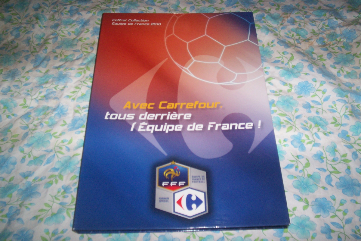 coffret publicitaire Carrefour equipe de france foot ball 2010 contient 22 magnets sur 23 et en excellent état comme neuf .