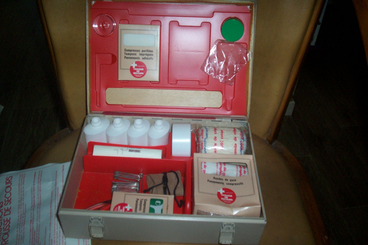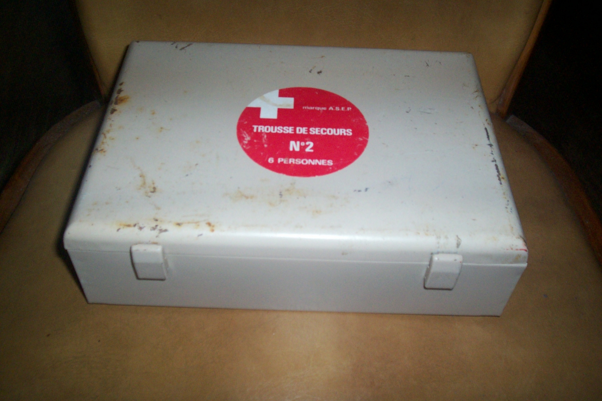 ancienne boite a pharmacie premier secours et d'occasion en très bon état .