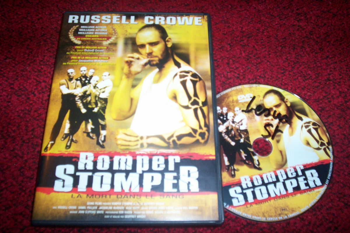 dvd avec russel crowe romper stomper film ultra violent ame sensible s'abstenir durée 1 heure, 30 mns couleur version française et anglaise dvd d'occasion en très bon état .