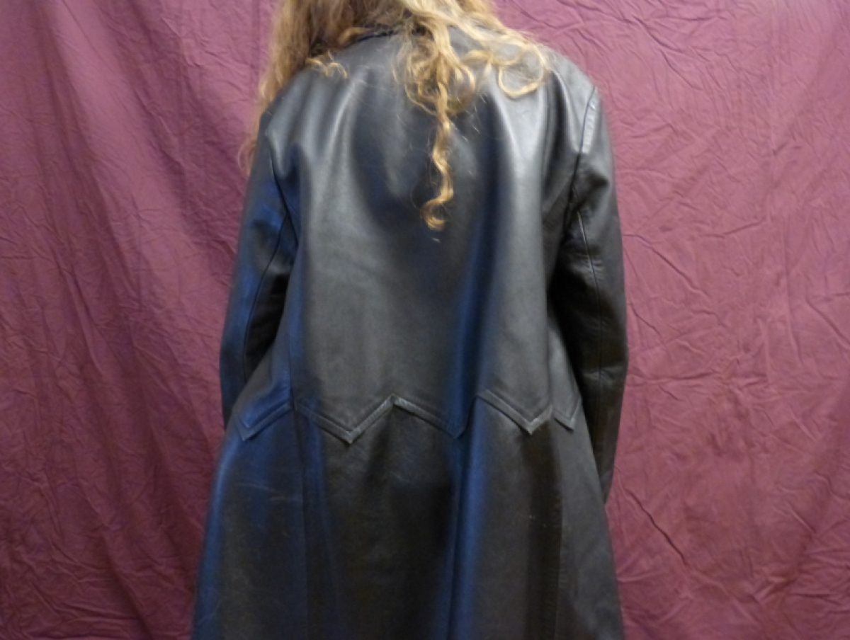 Long manteau en vrai cuir ancien, noir. Manteau ancien et vintage. Pièce unique.