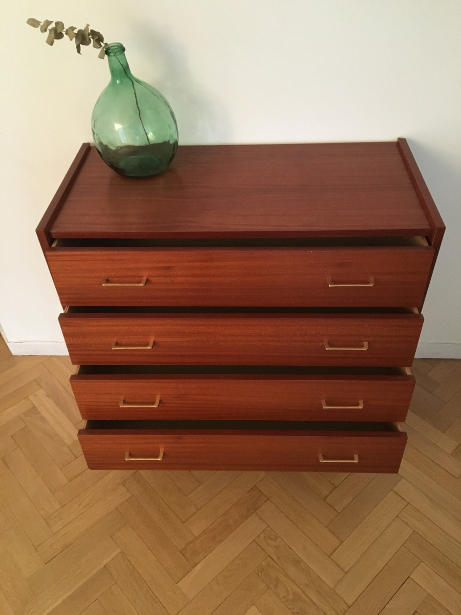 Commode vintage années 50 avec pieds compas style scandinave en excellent état.