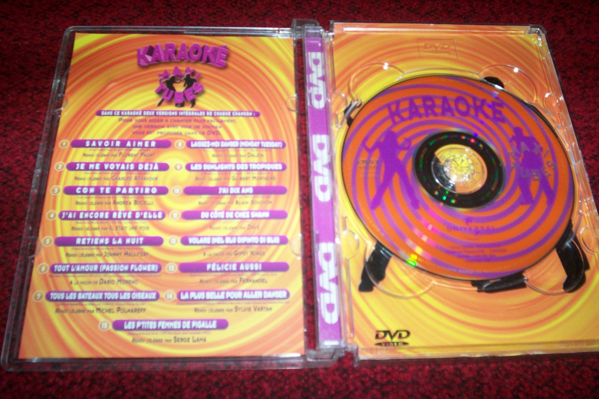 dvd karaoké 15 titres boitier casser mais dvd en très bon état propre .exemple de titres retiens la nuit johnny hallyday je me voyais deja aznavour j'ai encore reve d'elle il etait une fois tous les bateaux tous les oiseaux polnareff j'ai dix ans souchon du coté de chez swan dave etc ..