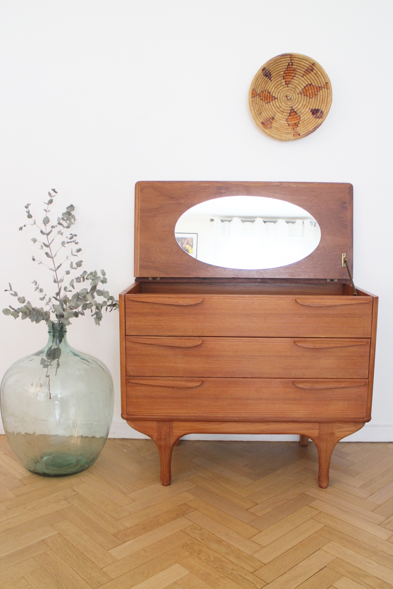 Magnifique Commode coiffeuse vintage en teck des années 60.