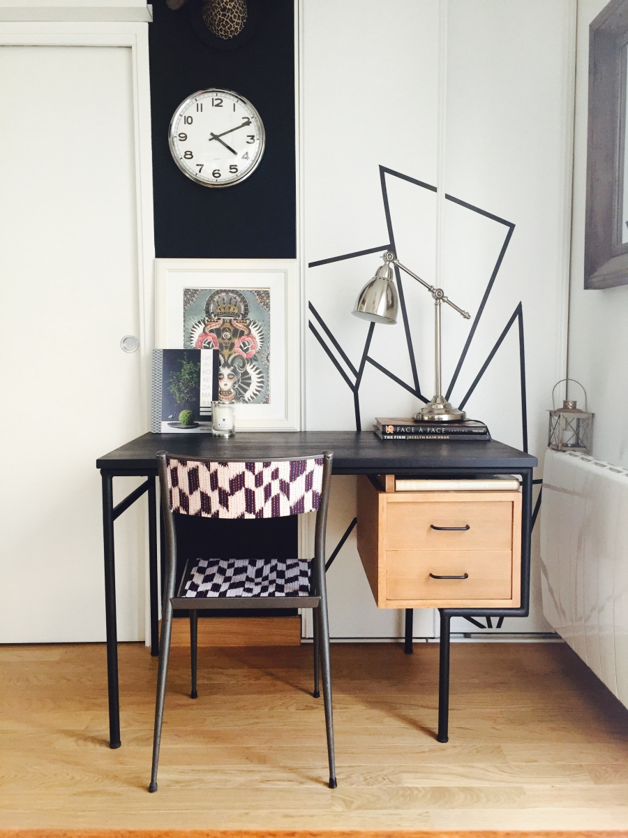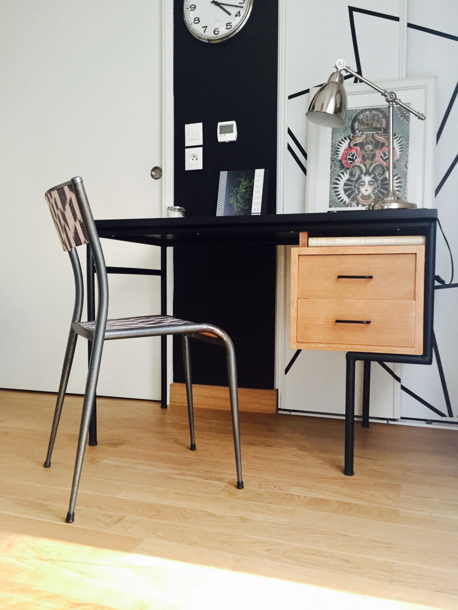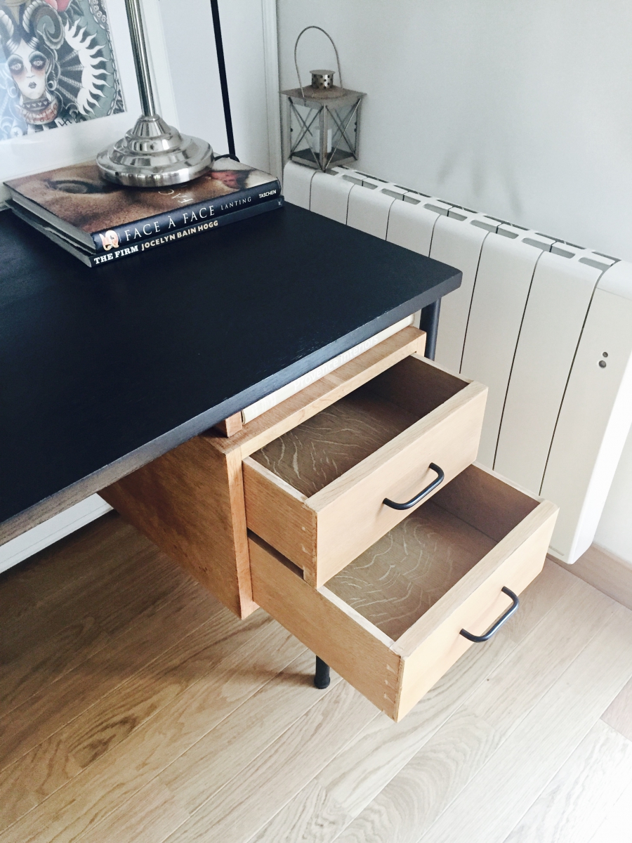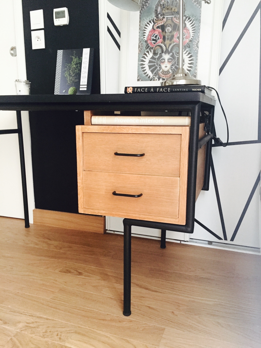 Piétement en métal peint en noir et caisson suspendu à deux tiroirs