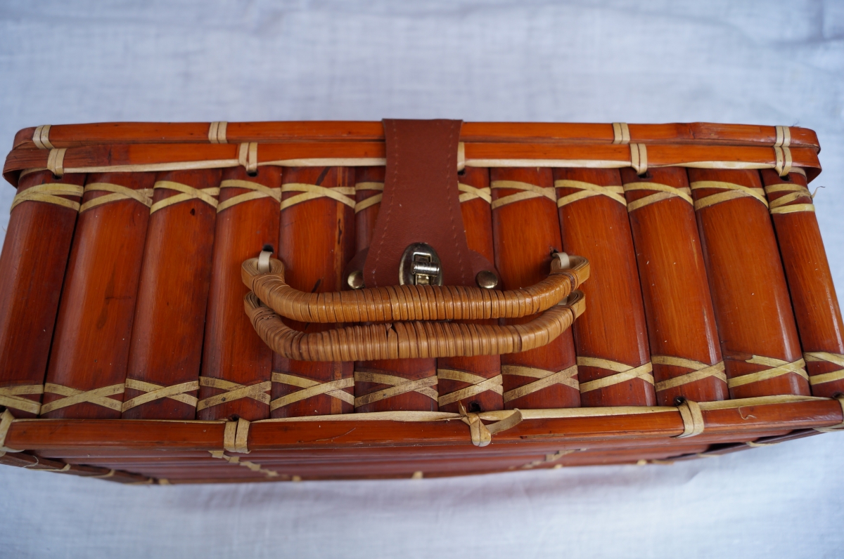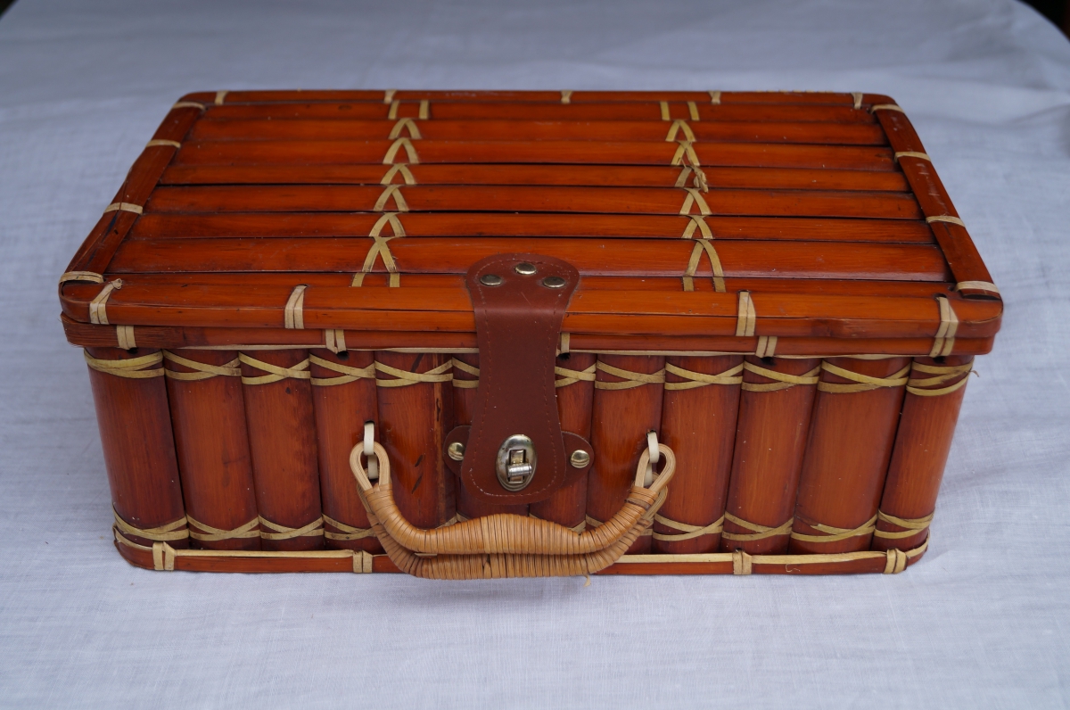 Valisette vintage en Bambou, années 50.