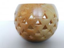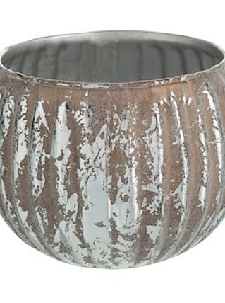 Photophore rond strié d'aspect antique. Touché velours, très doux et chaleureux.