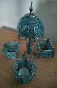 Photophore rond strié d'aspect antique. Touché velours, très doux et chaleureux.