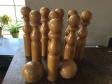 Jeu de 9 quilles en bois et 2 boules, dimensions des quilles 24 cm