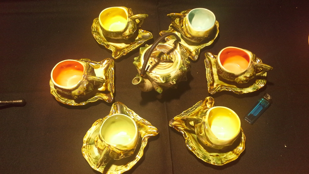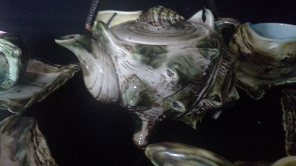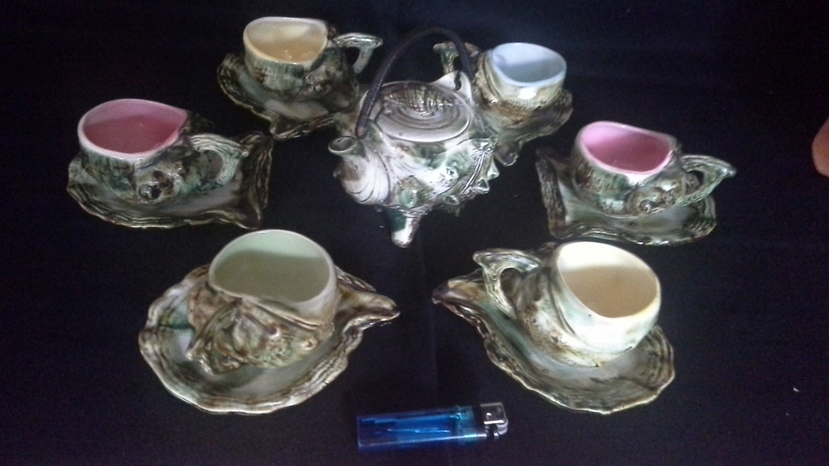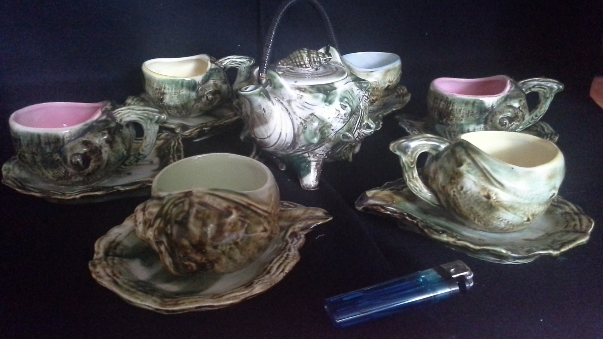 Service a café des années 60 sur le thème des coquillages en barbotine
