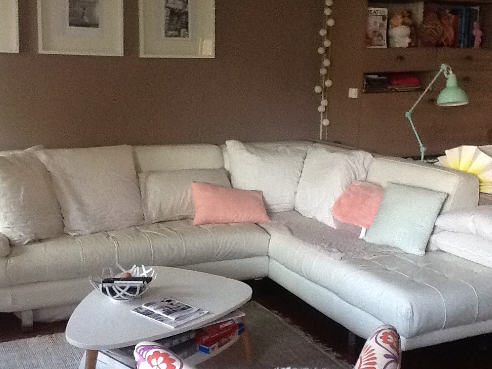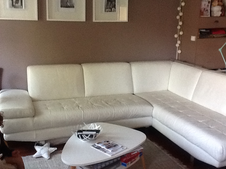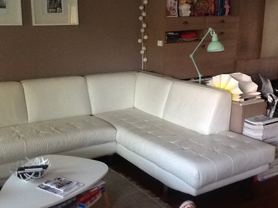 Très beau canape d'angle en cuir blanc très bien entretenu pas de trou ou déchirure ou tâches