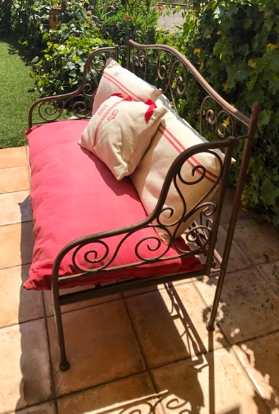 Très joli petit canapé en fer forgé, style ancien lit d’enfant. Excellent état.